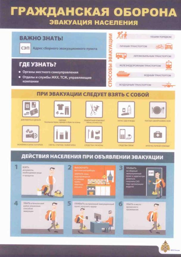 4. Подготовить необходимые вещи, документы, продукты питания, отключить газ, электроэнергию и в дальнейшем действовать в соответствии с полученными рекомендациями.